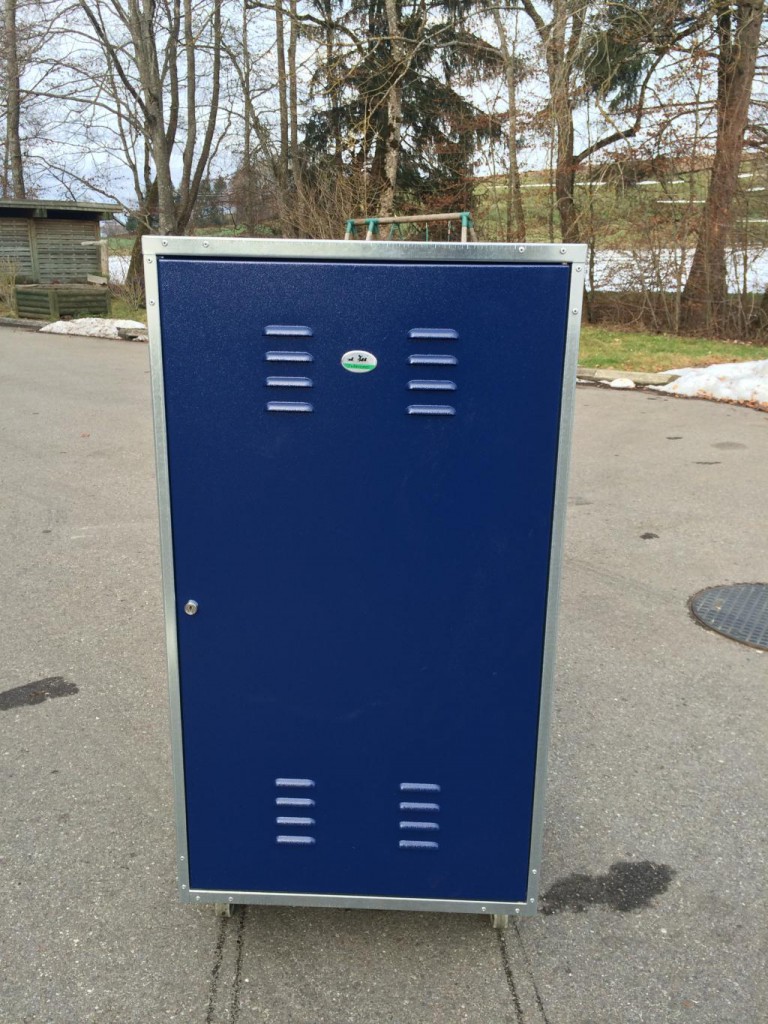 en acier zingué, pour deux selles, porte vernie 106 x 60 x 60 cm, 37 kg, 8 crochets verrouillable, livré avec deux clef, fabriquée en Allemagne
