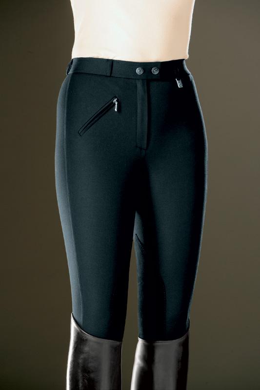 Pantalon Cavallo avec coutures latérales, couture en arc au fessier, modèle solide et élastique, 100 % Polyamid, basanes en tissu, deux poches avant et une poche arrière, passants pour la ceinture.