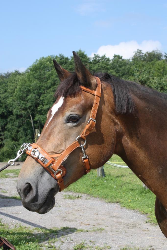 Muserolle doublée en cuir vachette. Fabrication maison. Couleurs: brun claire Tailles: pur-sang, demi-sang Poney Fr. 189.00