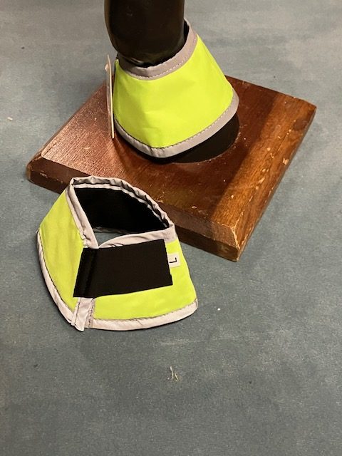 Matière extérieure jaune fluo, doublure intérieure en polaire moelleuse, avec bordure réfléchissante. Plus de sécurité la nuit et par brouillard. Solide fermeture velcro pour un maintien sûr.
