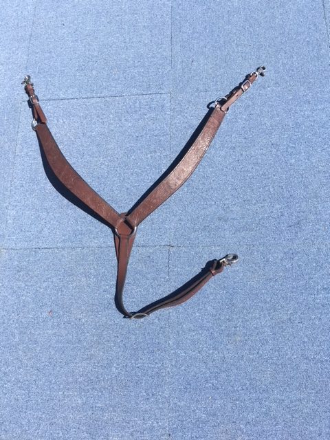 Collier de chasse, décore d'un motif floral, fixation de sangle rapide par mousqueton, taille cheval, brun