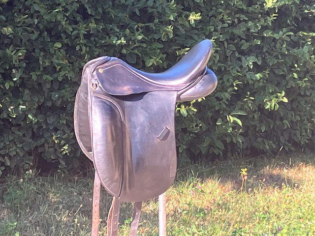 Selle de Dressage Ronzon, en parfait état. Siège creux 17.5″ M.