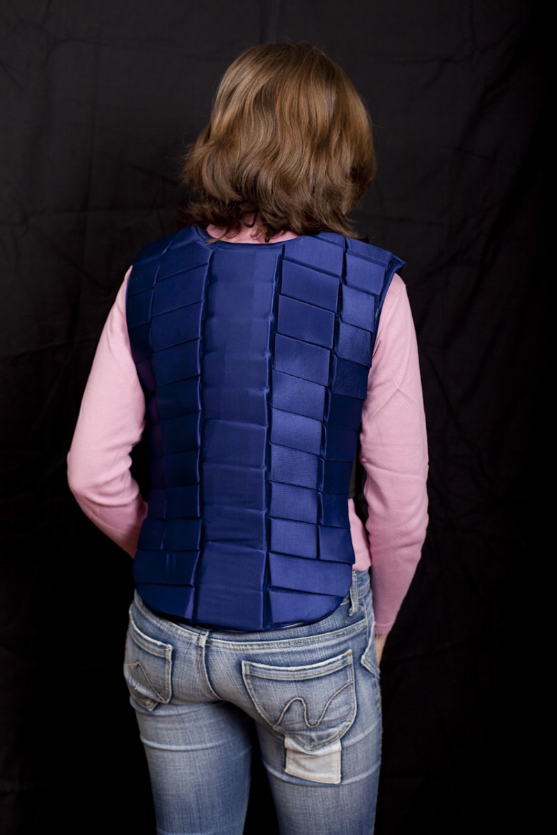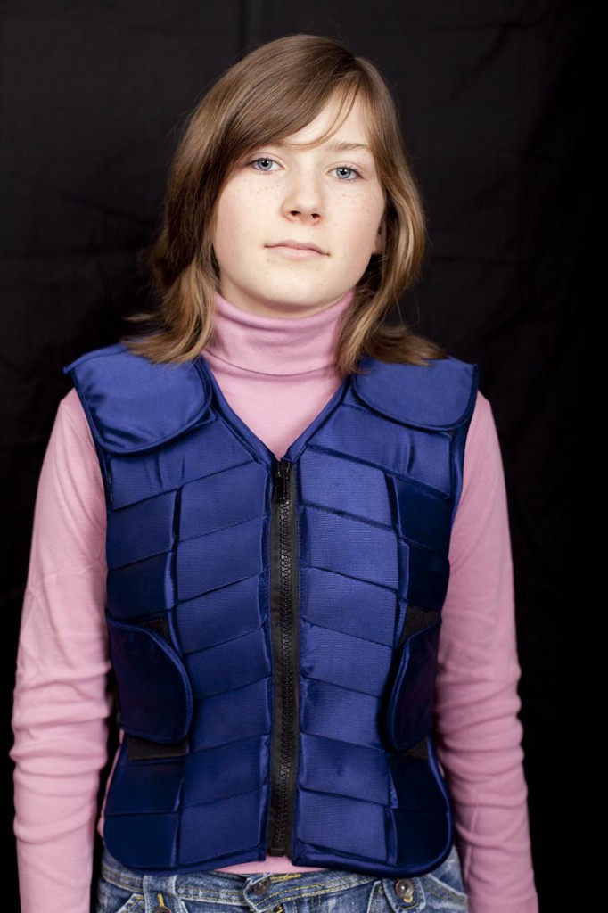 Conçu pour protéger le buste du cavalier contre les chocs en cas de chute. Confort extraordinaire grâce à sa structure en mousse carrée très flexible. Réglages faciles. Lavable à la machine. Bleu marine