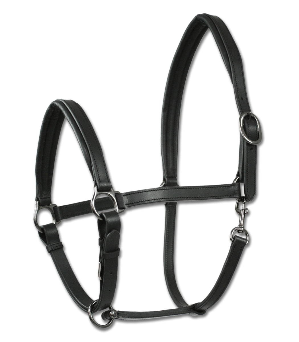 Licol en cuir anglais souple 1er choix, noir, têtière et muserolle doublé en cuir vachette ton sur ton