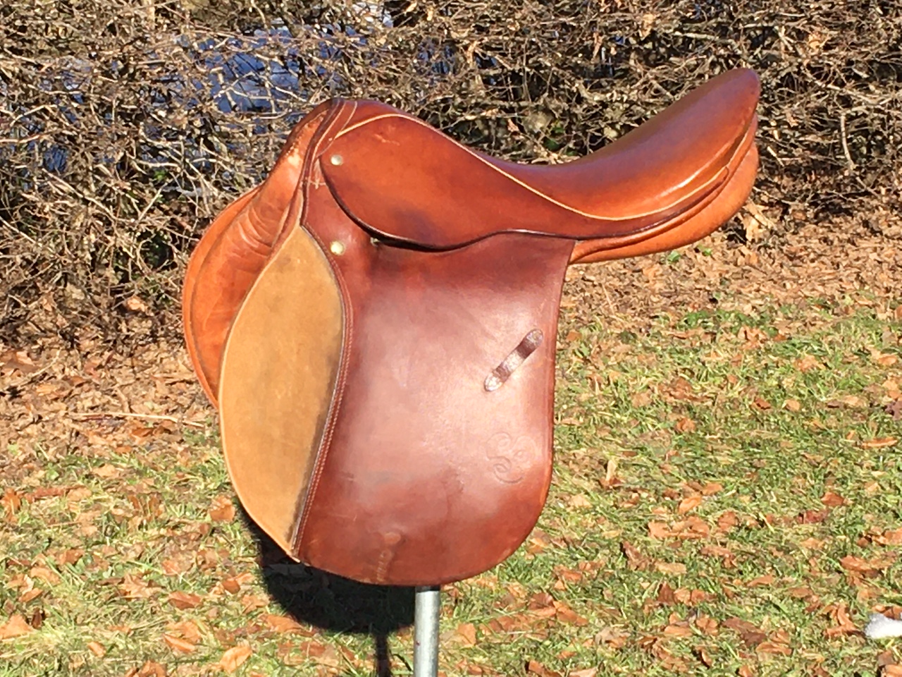 Selle mixte Stuebben Siegfried, 18,5″ 30″, en très bonne qualité. Pour un cheval avec un garrot moyen. Peu servie.