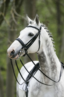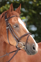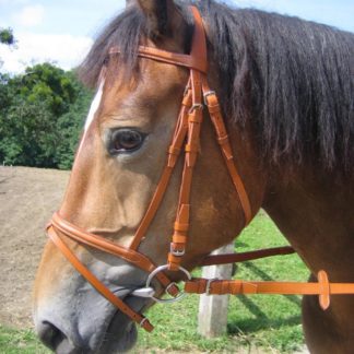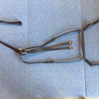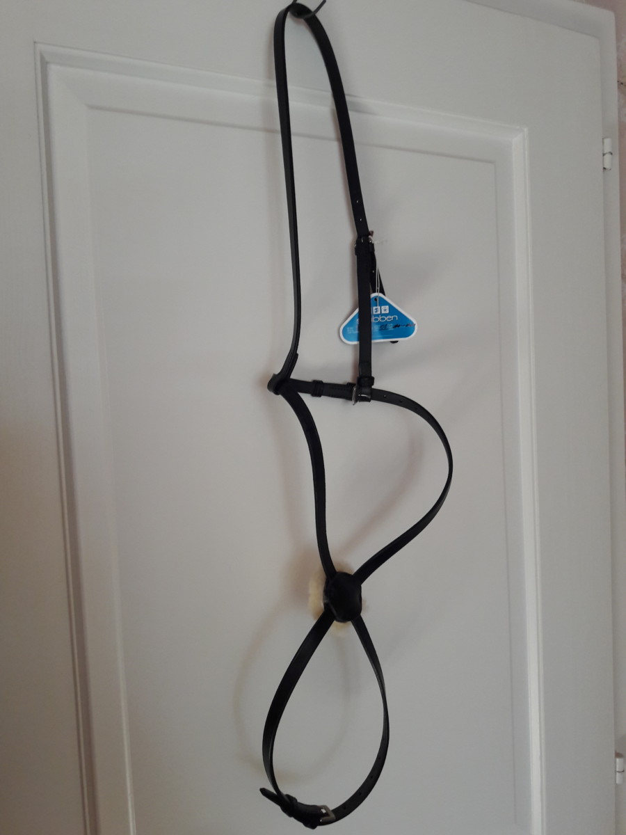en cuir anglais souple, rembourrée avec de la peau de mouton au niveau du point de croisement pour minimiser la pression, cuir noir, boucles en inox, taille pur-sang